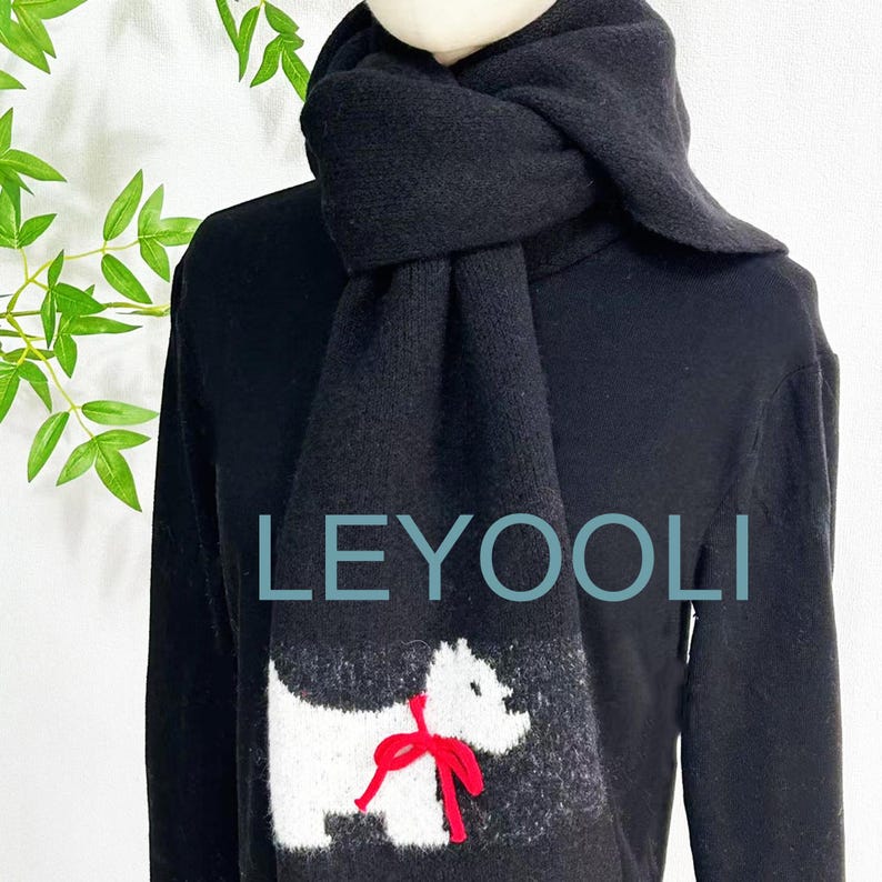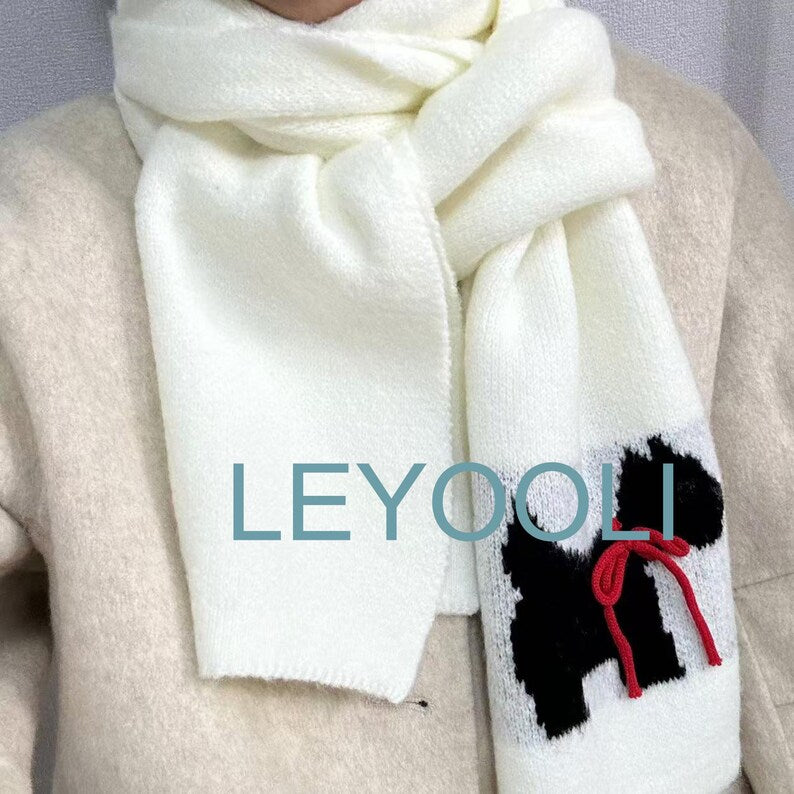 Handmade Knitted Puppy Scarf, Pink Cartoon Bow, Winter Warm Scarf