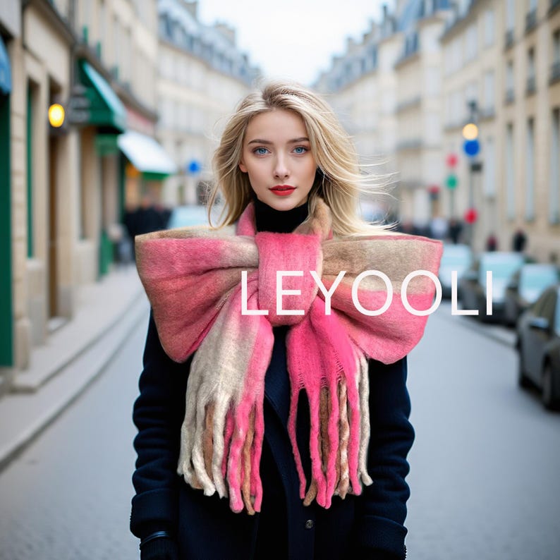 The scarf is brushed, which makes it fluffy and warm.