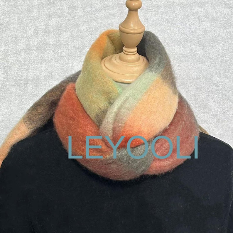 Plaid Mohair Scarf, Red Brown Wool Blend, Warm Winter Shawl